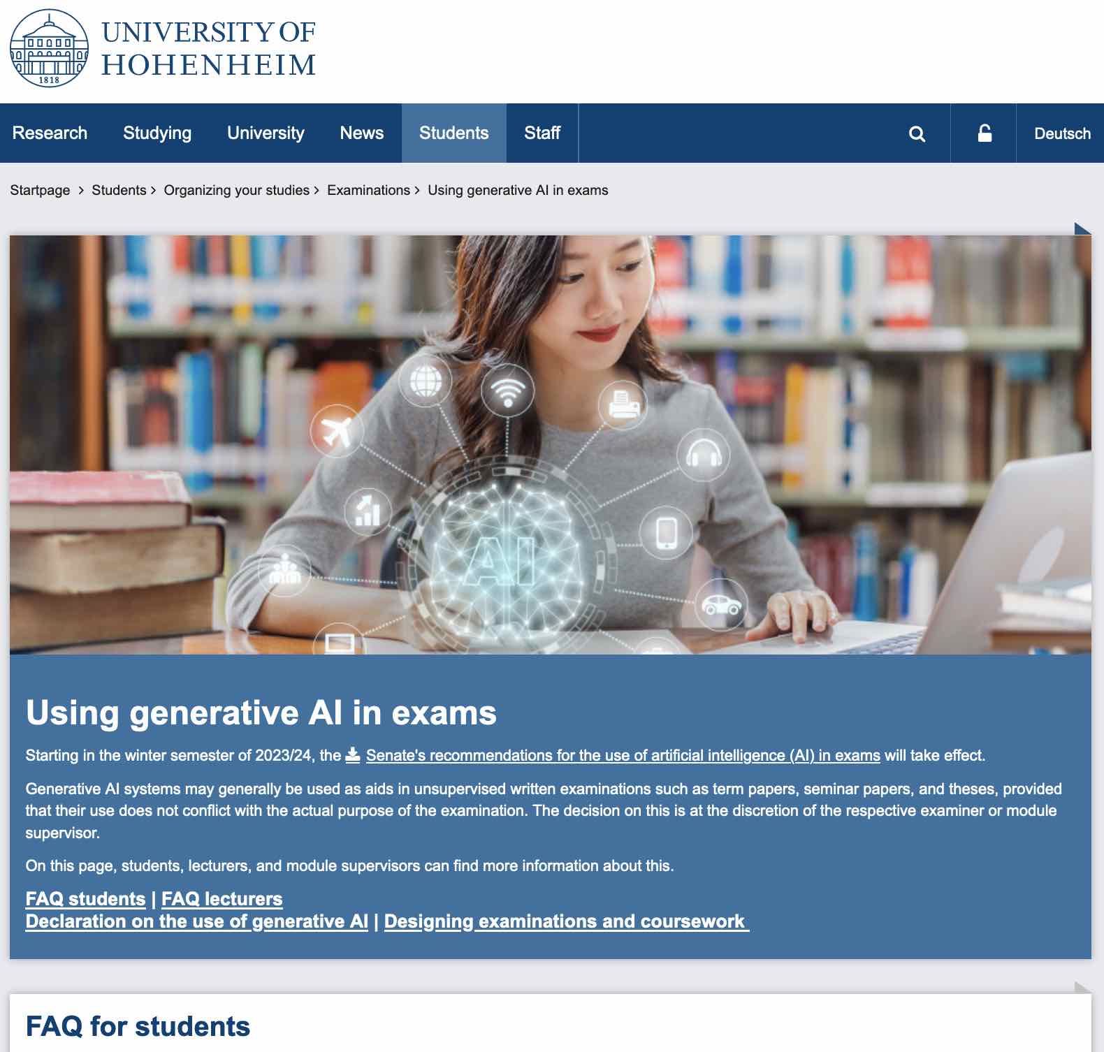 The University of Hohenheim has published a policy on the use of generative artificial intelligence (such as large language models, LLM)2, and their use in teaching and assessments. You can read about this policy by following this link Link.